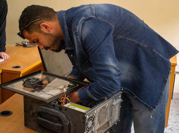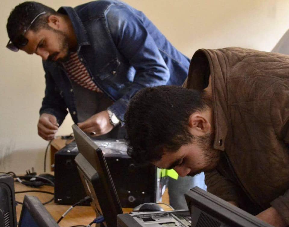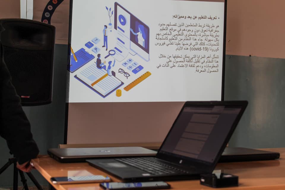 و تستمر حملات فريق طلبة كلية تقنية المعلومات بالتعاون مع مكتب خدمة المجتمع والتعليم المستمر بالكلية حيث كانت ثالث محطات الحملة يوم الخميس الموافق 11-03-2021م في مدرسة القرضابية حيث قام الطلبة بإعطاء محاضرة توعوية عن كيفية و أهمية التعليم عن بعد في ظل ظروف جائحة كورونا وقام الطلبة بصيانة معمل المدرسة وإصلاح كافة الأجهزة بالمدرسة برفقة كل من عميد كلية تقنية المعلومات الأستاذ عيسى مانيطه والدكتور أنور الهنشيري رئيس قسم نظم المعلومات بالكلية والأستاذة بسمة القبي والأستاذة زينب كرواد.